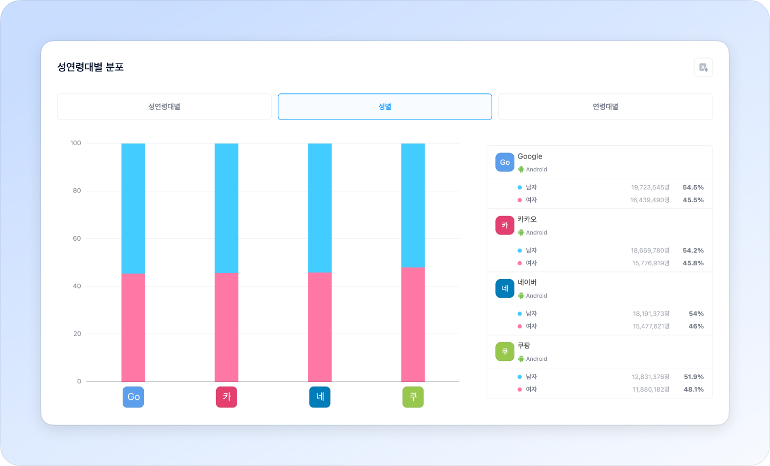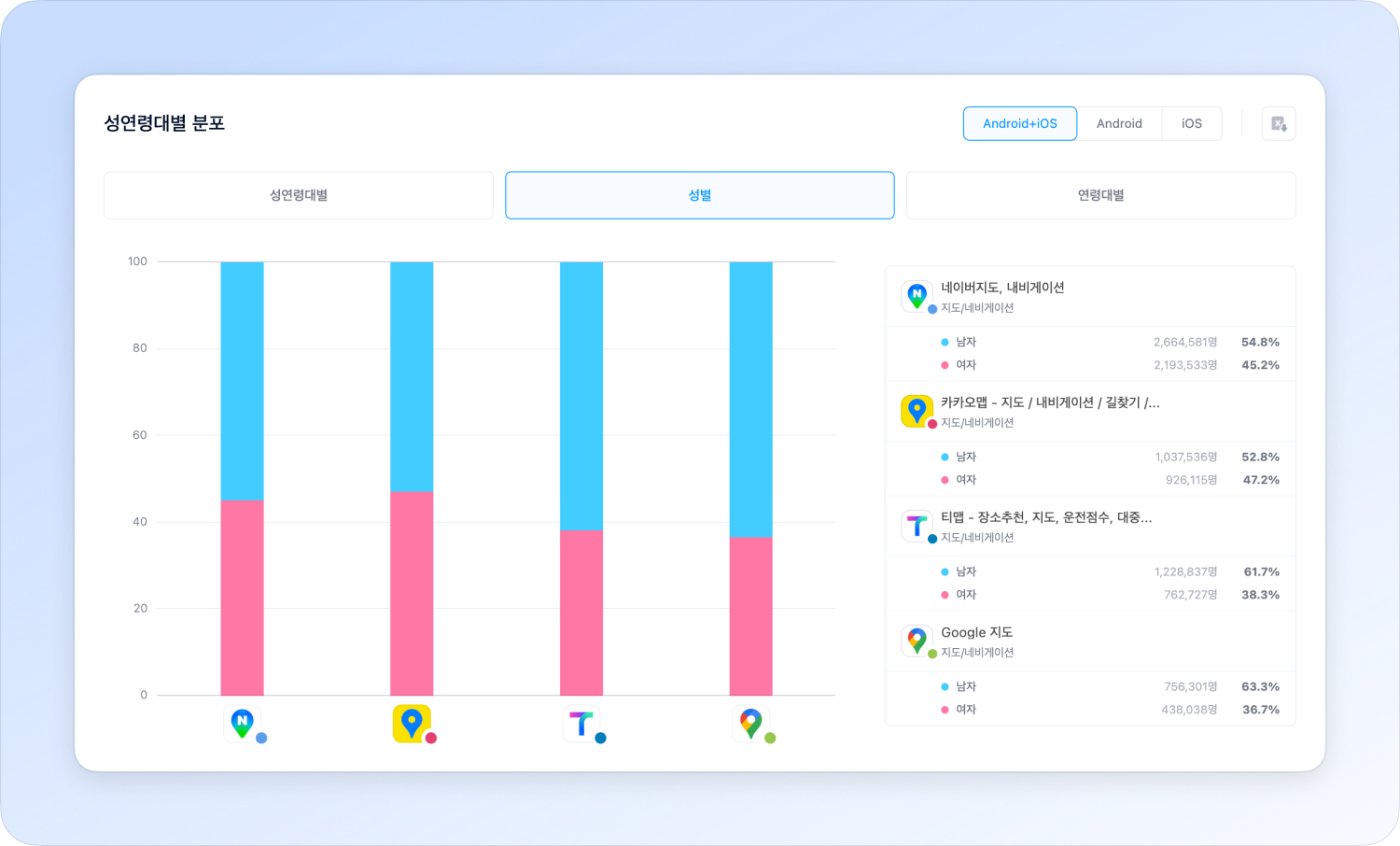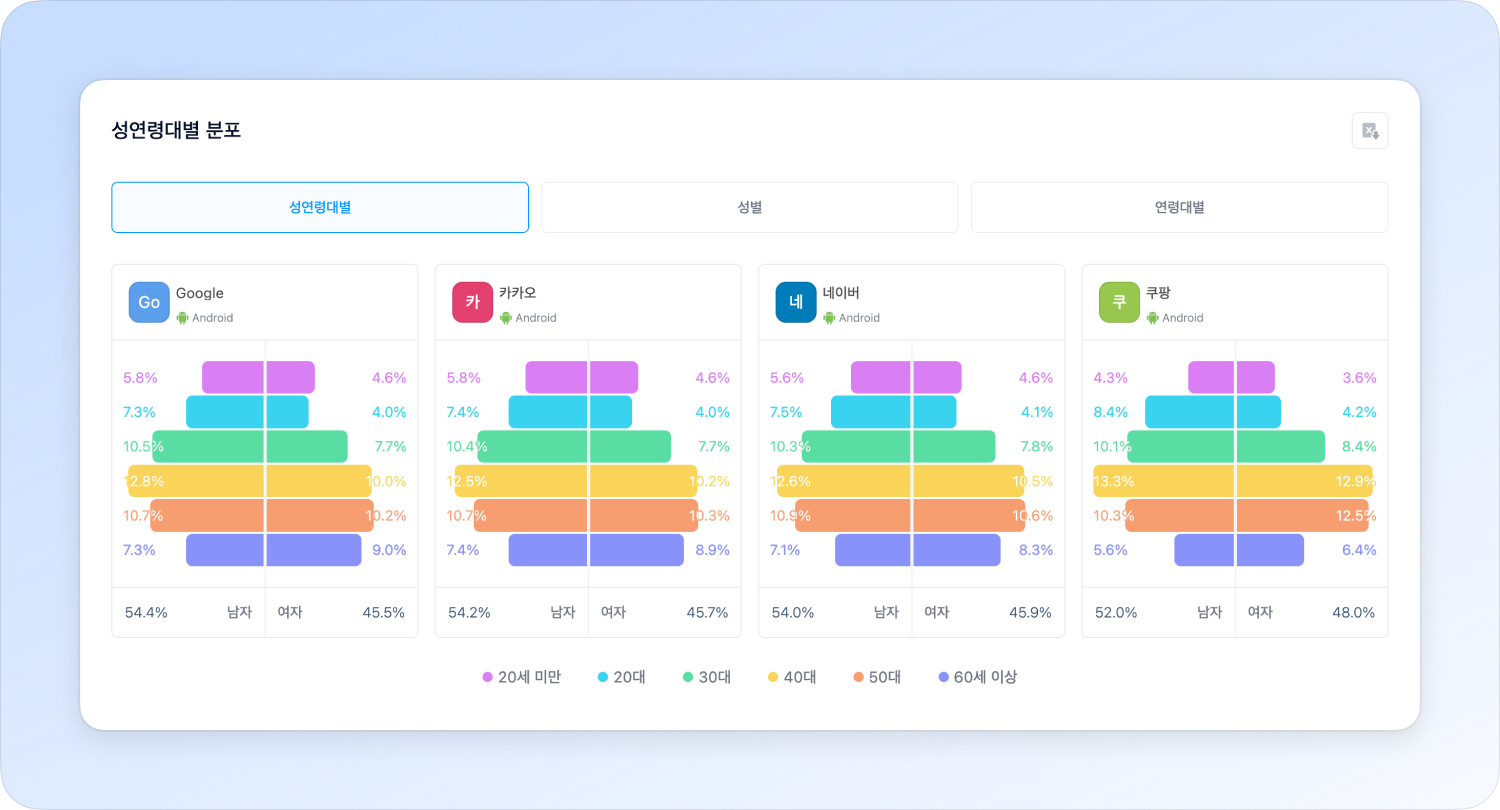 You can analyze the main user groups by checking user distribution by gender and age.