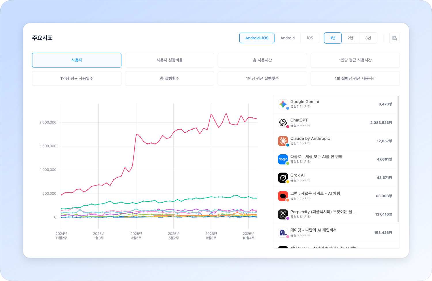 Compare key developer insights in detail through a wide range of metrics. You can download historical data and also download data for each indicator with OS filters applied.