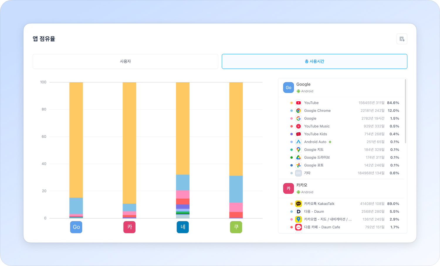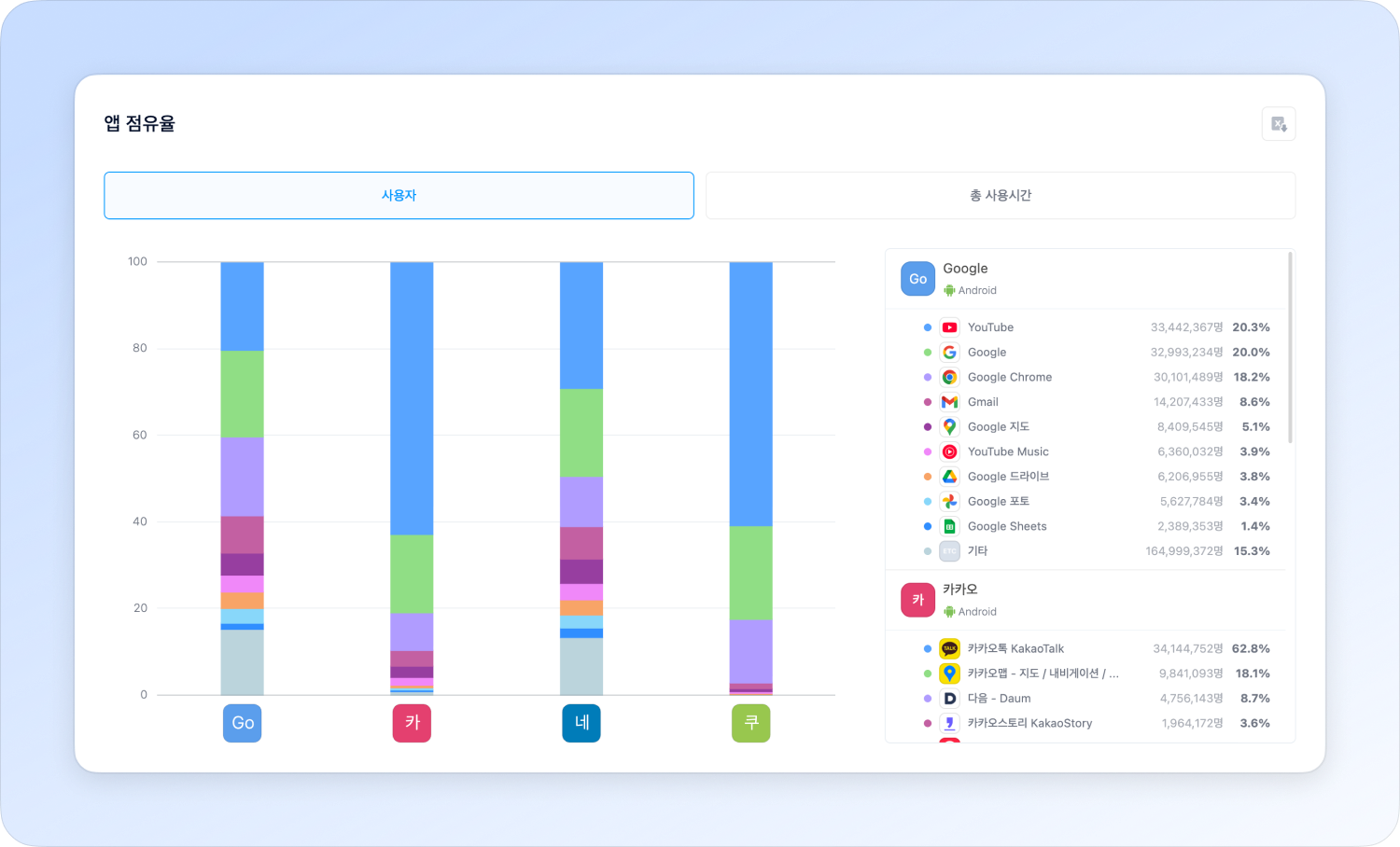 You can analyze the share of users and total time in app across apps belonging to the developer.